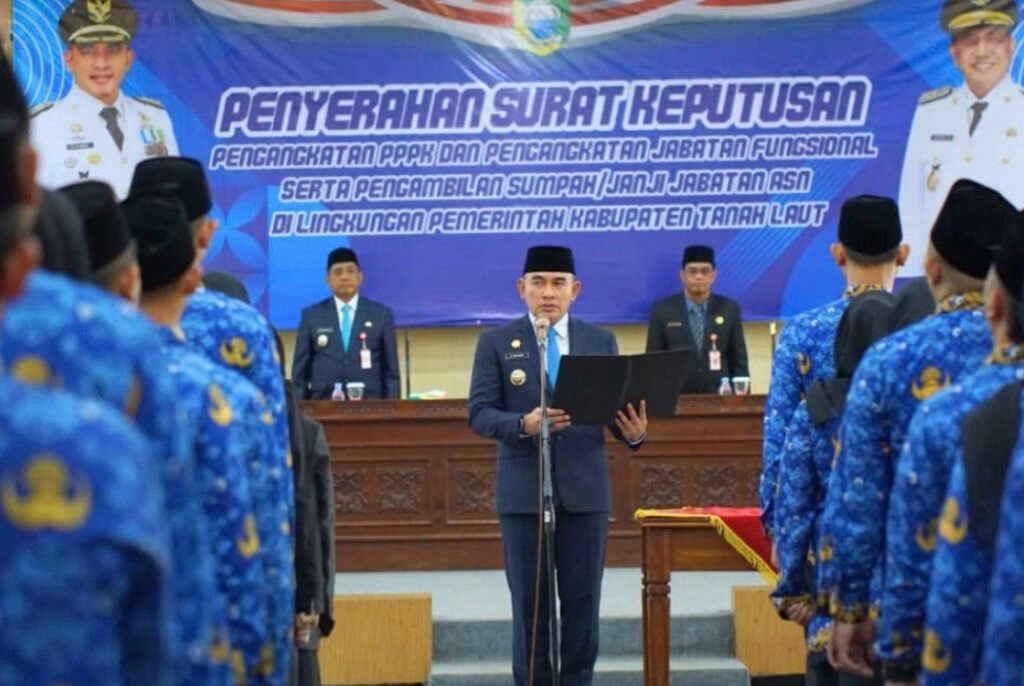 FaktaNow.com, Tanah Laut – Sebanyak 564 Aparatur Sipil Negara (ASN) yang terdiri dari Pegawai Pemerintah dengan Perjanjian Kerja (PPPK) dan pejabat fungsional resmi dilantik Bupati Tanah Laut (Tala) H. Rahmat Trianto dalam acara penyerahan Surat Keputusan (SK) dan pengambilan sumpah/janji jabatan, Senin (14/04/2025) di Gedung Balairung Tuntung Pandang.