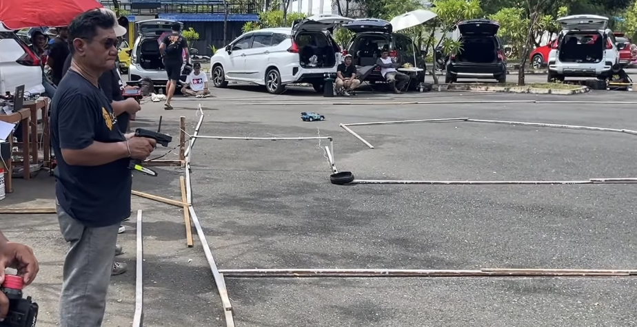 Sirkuit yang sederhana, terdiri dari potongan kayu membentuk tikungan, tanjakan kecil, dan pembatas, menjadi medan tantangan bagi mobil RC skala 1/10 yang melesat dengan lincah. Beberapa mobil berhasil menaklukkan tikungan tajam, sementara yang lain terguling karena menyentuh pembatas lintasan. Suasana pun makin hidup dengan teriakan semangat maupun canda dari penonton dan peserta.