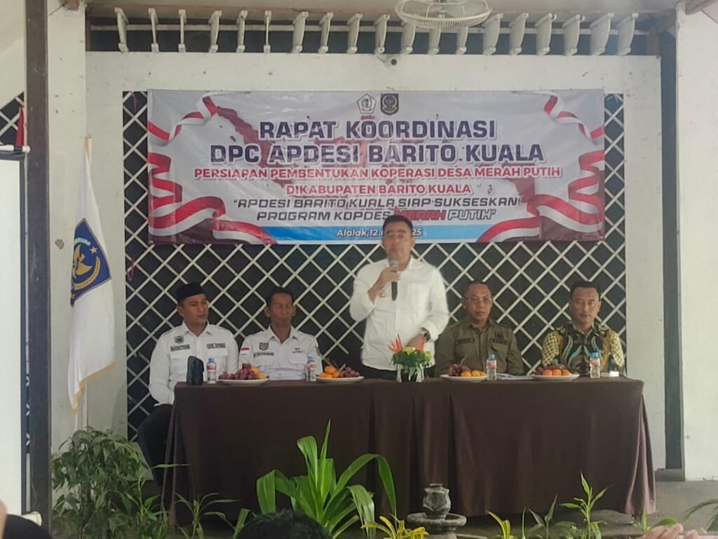 FaktaNow.com, Barito Kuala – Pemerintah daerah bersama Asosiasi Pemerintah Desa Seluruh Indonesia (Apdesi) Kab. Barito Kuala melaksanakan Rapat Koordinasi DPC Apdesi dalam rangka persiapan pembentukan Koperasi Desa Merah Putih. Kegiatan ini mengusung tema: “Apdesi Barito Kuala Siap Sukseskan Program Kopdes Merah Putih” dan digelar di Pawon Tlogo, Handil Bakti, Senin (12/5).